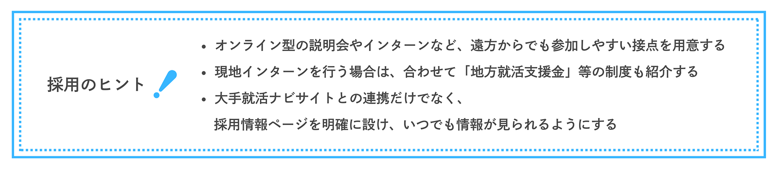③オンライン型の説明会やインターンなど、遠方からでも参加しやすい接点を用意すること